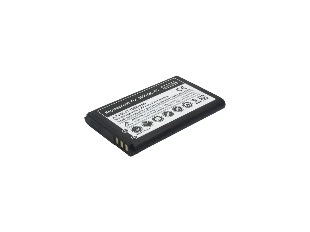 Li-Ion Akku Typ "BL-5C" mit 3,6 Volt Spannung und 0,9Ah Kapazität, passend für die schnurlosen Telefone Nokia 110, 1100, 1101, 1110, 1110i, 1112, 1200, 1208, 1209, 1600, 1616, 1650, 1680 Classic, 1800, 207, 208, 220, 220 Dual SIM, 2310, 2323 Classic, 2330 Classic, 2600, 2610, 2626, 2700 Classic, 2710 Navigator, 2730 Classic, 3100, 3109 Classic, 3110 Classic, 3110 Evolve, 3120, 3310 (2017), 3555, 3650, 3660, 5130 Xpress Music, 6030, 6085, 6086, 6230, 6230i, 6267, 6270, 6555, 6600, 6630, 6670, 6680, 6681, 6820, 6822, 7600, 7610, Asha 202, Asha 203, Asha 205, Asha 205 DualSIM, Asha 230 Dual SIM, C1-00, C1-01, C2-00, C2-01, C2-02, C2-03, C2-06, E50, E60, N-Gage, N70, N71, N72, N91, N91 8GB, X2-01, AVM FRITZ!Fon C6, SwyxPhone D510.
