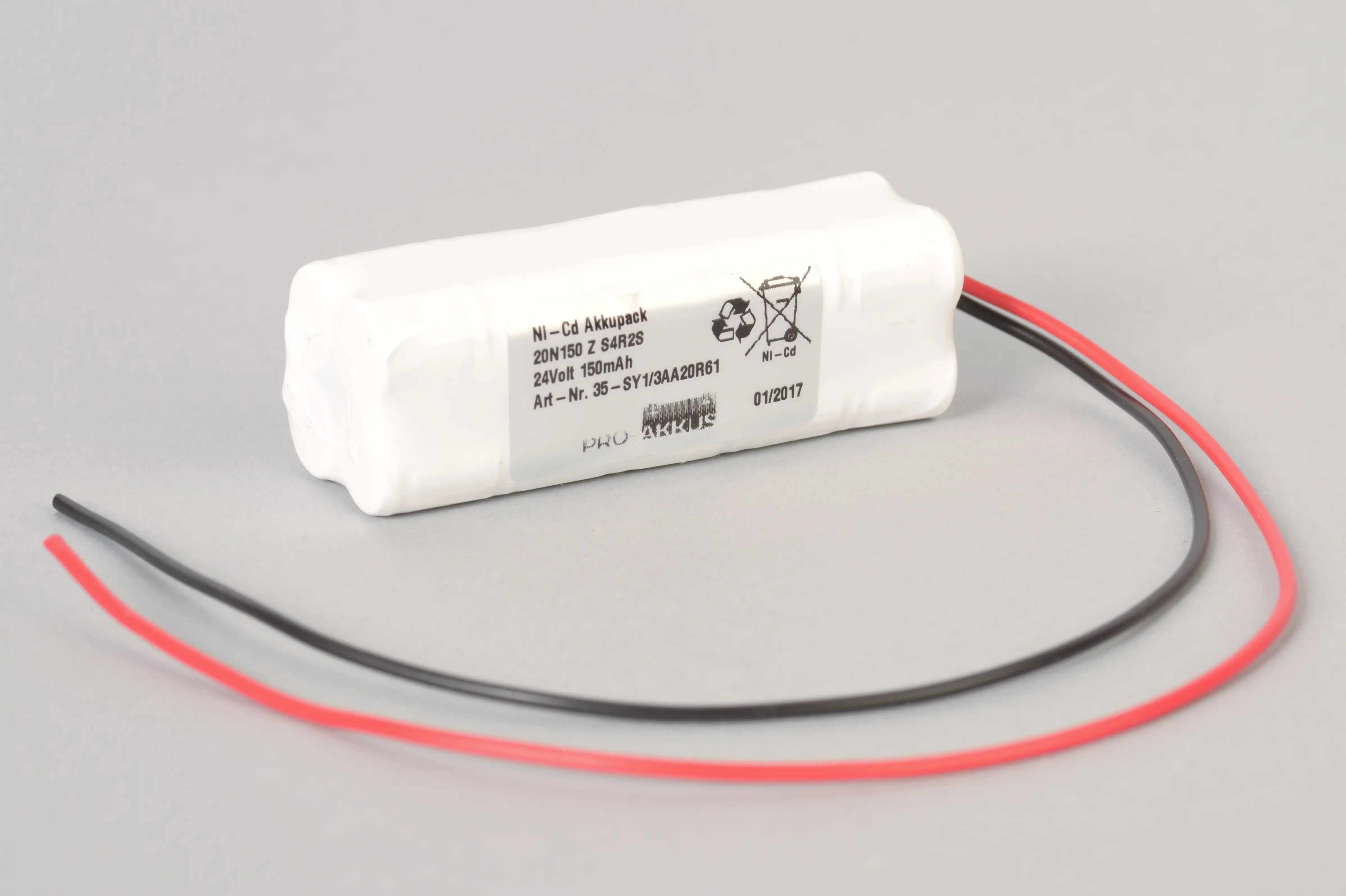 Ni-Cd Akkupack für Türsteuerungen, mit 24V Spannung und 150mAh (0,15Ah) Kapazität, aus hochwertigen 1/3AA - Zellen, 20 Säulen 2-reihig im Schrumpfschlauch, mit Kabel.